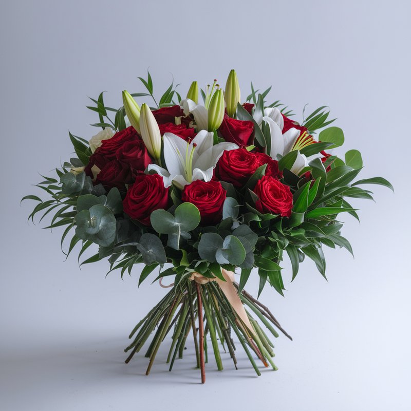 Show someone that she's in your heart forevermore with this gorgeous floral arrangement of lilies, roses, and mixed spring flowers. You'll take her breath away with an elegant and purely feminine mix of pink alstroemeria lilies, peach and pink roses, and the always popular Stargazer lilies.