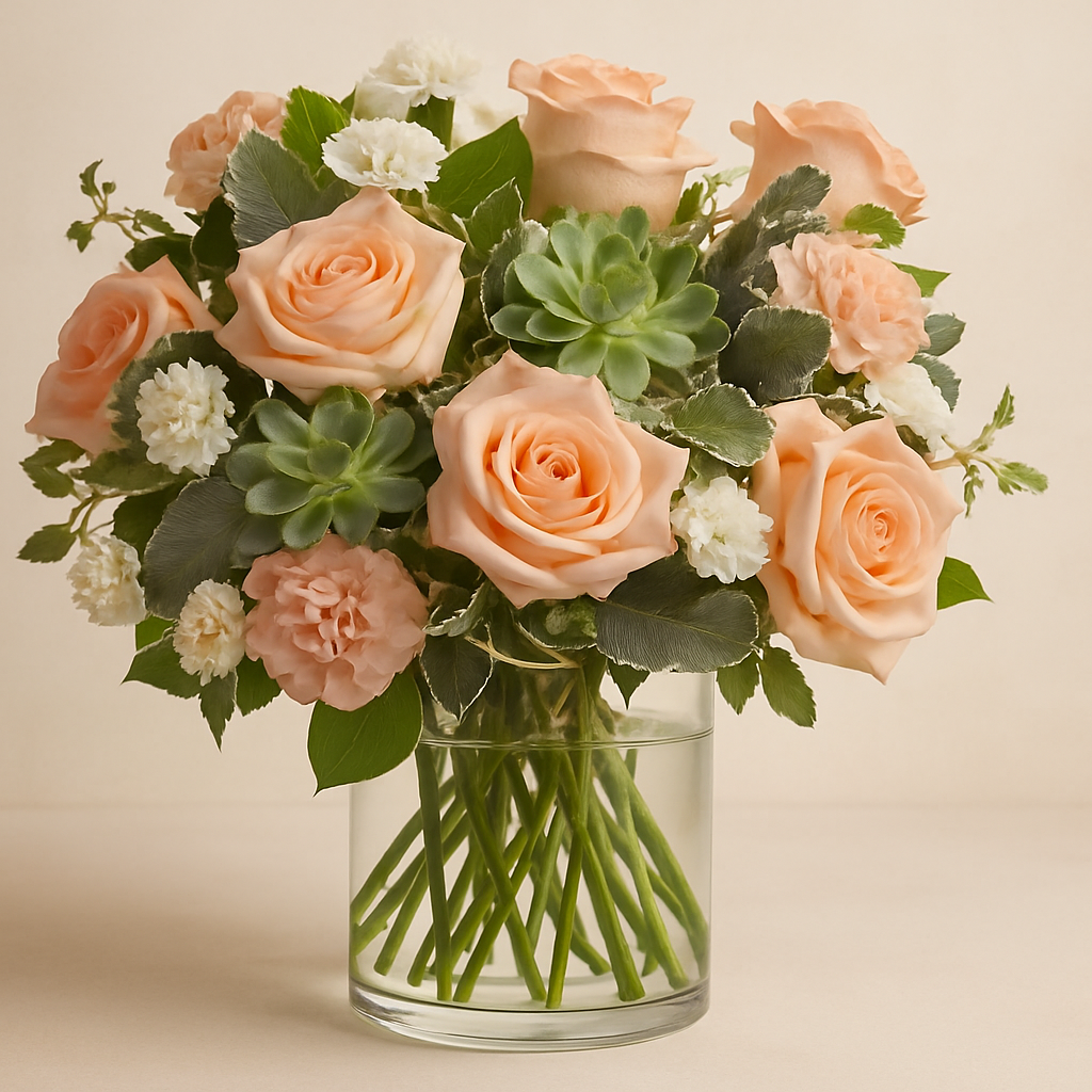 Turn an ordinary moment into something special with this captivating hand-crafted bouquet of succulents, in beautiful peach tones, designed to convey emotion beyond words. Thoughtfully created for brightening any day with unexpected beauty, each stem is carefully arranged by experienced local florists who understand the art of meaningful flower delivery. With international delivery available worldwide, the Peach & Succulent Studio ensures your love and care travel any distance β arriving fresh, vibrant, and exactly when it matters most.